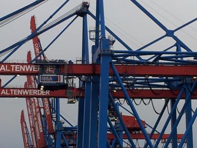 Und ausserdem komme ich jetzt zum ersten Mal in die "Stadt die niemals schlaeft" - nein, ich meine nicht New York.... das vollautomatisierte Containerterminal Altenwerder. Kein Mensch faehrt die Van Carrier - alles vollautomatisch! Rund um die Uhr...