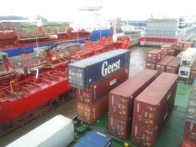 Das Einschlafen ist nicht ganz leicht. Das Schiff knattert, knarzt, quietscht. Es hoert sich an wie ein Gueterzug mit voller Geschwindigkeit. Und das sind wir ja auch irgendwie: Container an Bord und volle Kanne voraus zum naechsten Zielhafen Bremerhaven.